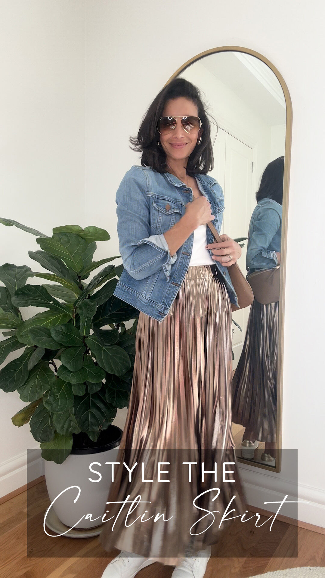 Introducing the Caitlin Pleated Skirt—a limited-edition statement piece with a stunning metallic shine that catches the light with every step. Designed for both comfort and style, it features an elasticated waistband and flowing pleats that flatter every silhouette. A...
