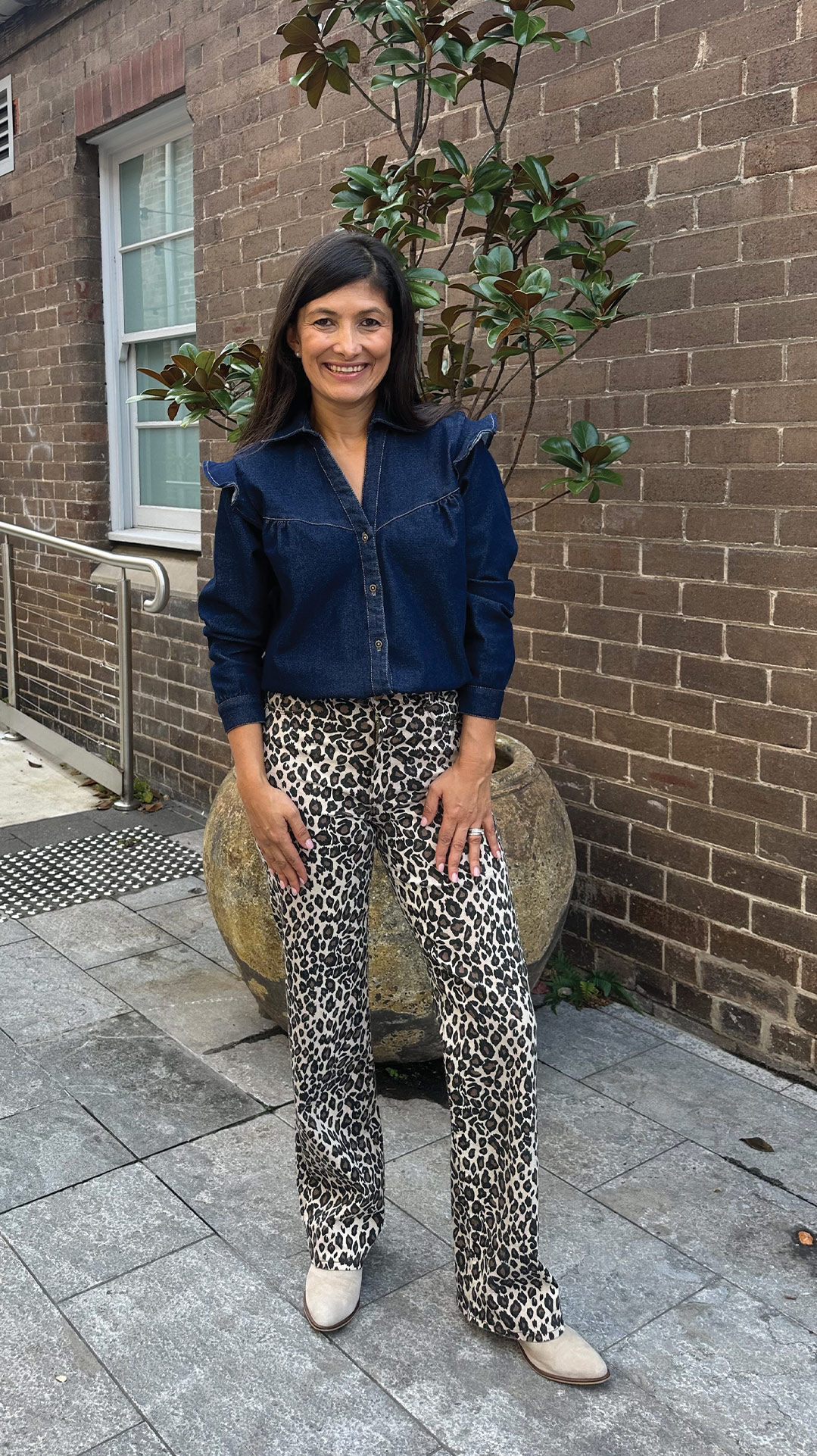Unleash your wild side with these stylish leopard print jeans! Featuring a high-rise waist and a straight-leg cut, these jeans blend comfort with effortless cool. Made from stretchable fabric, they provide a structured yet flexible fit that is perfect...